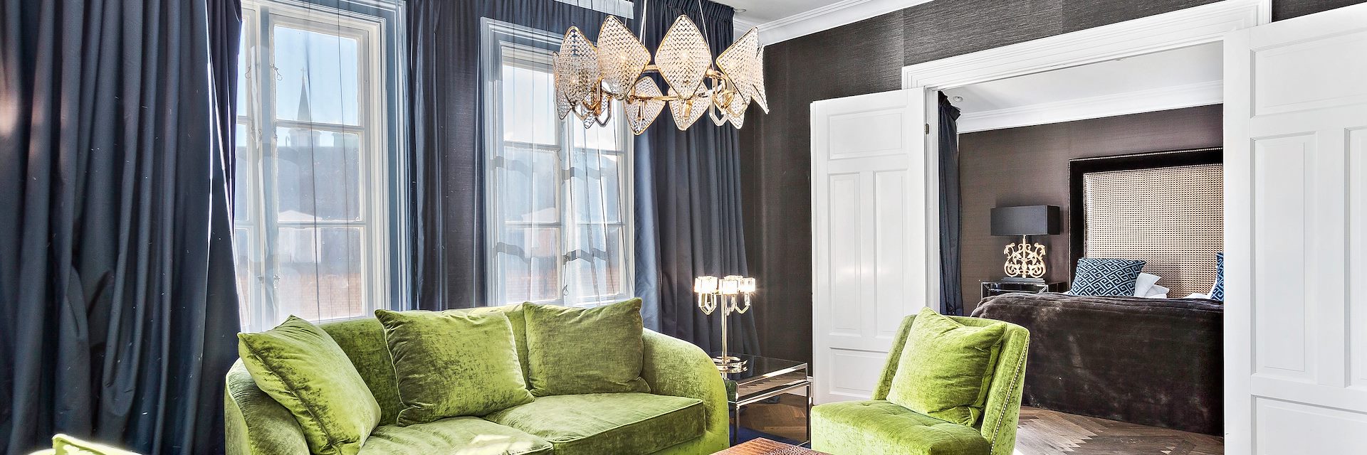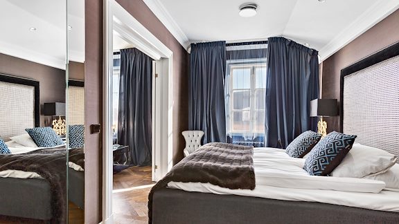 Vår svit bär namnet Direktören. Rummet är uppdelat i två rum där det ena är sovrum med en 180cm dubbelsäng och det andra vardagsrum. I vardagsrummet finns en soffa med två fåtöljer samt en sovalkov ämnad för barn.